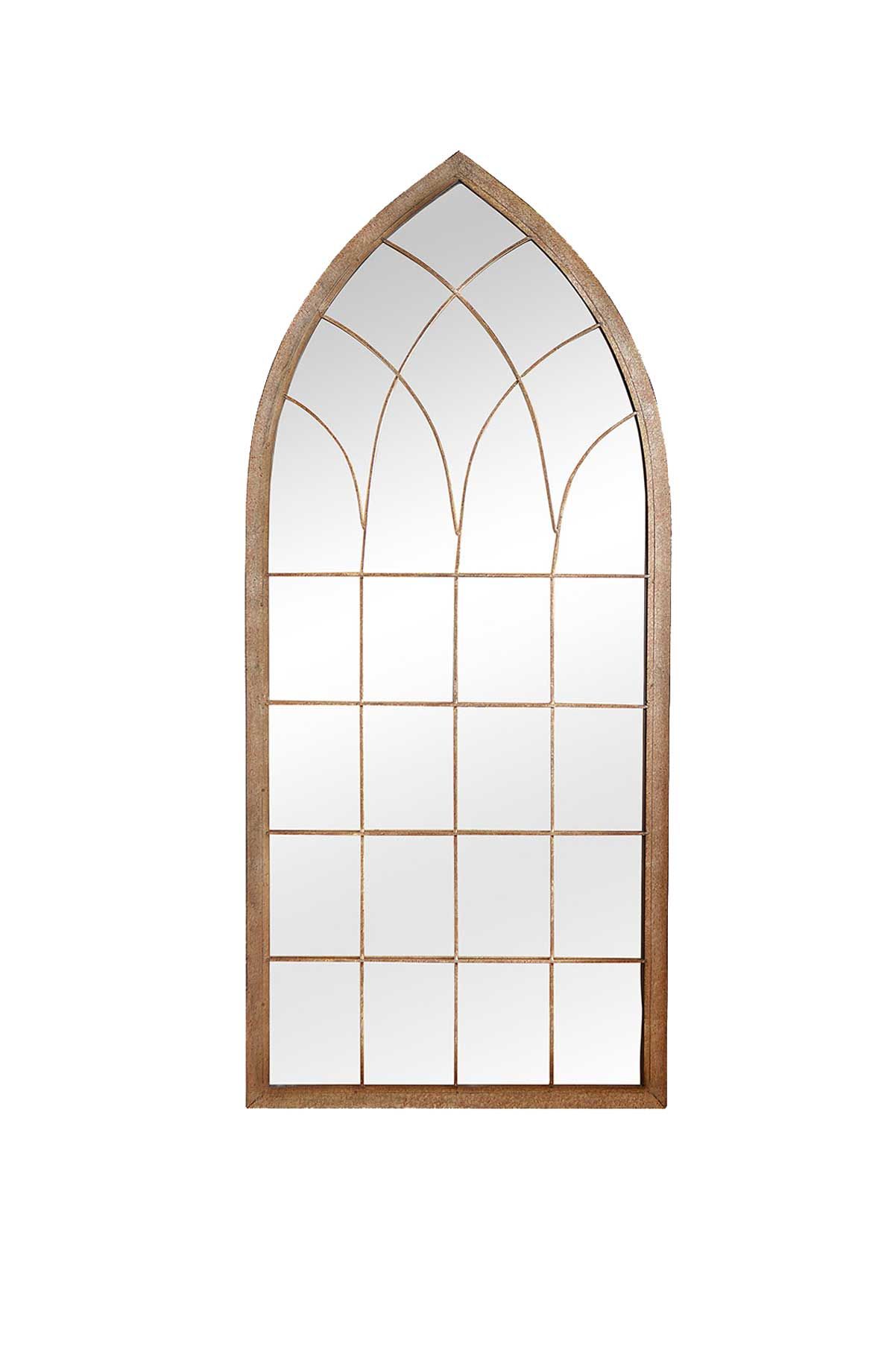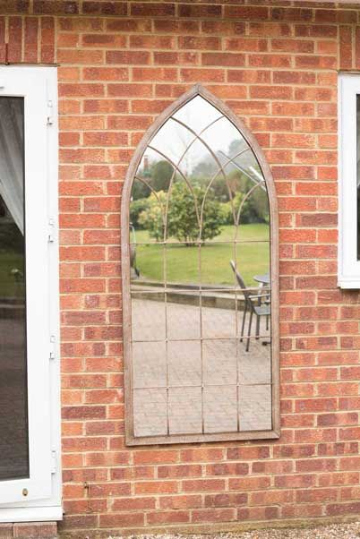A stunning metal Gothic arch-design garden wall mirror suitable for both inside or outside use.