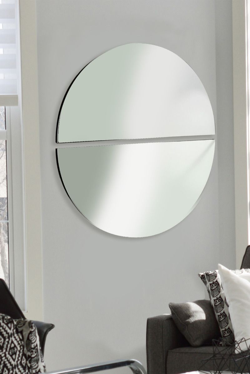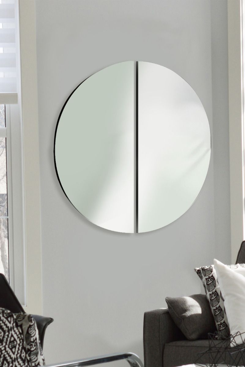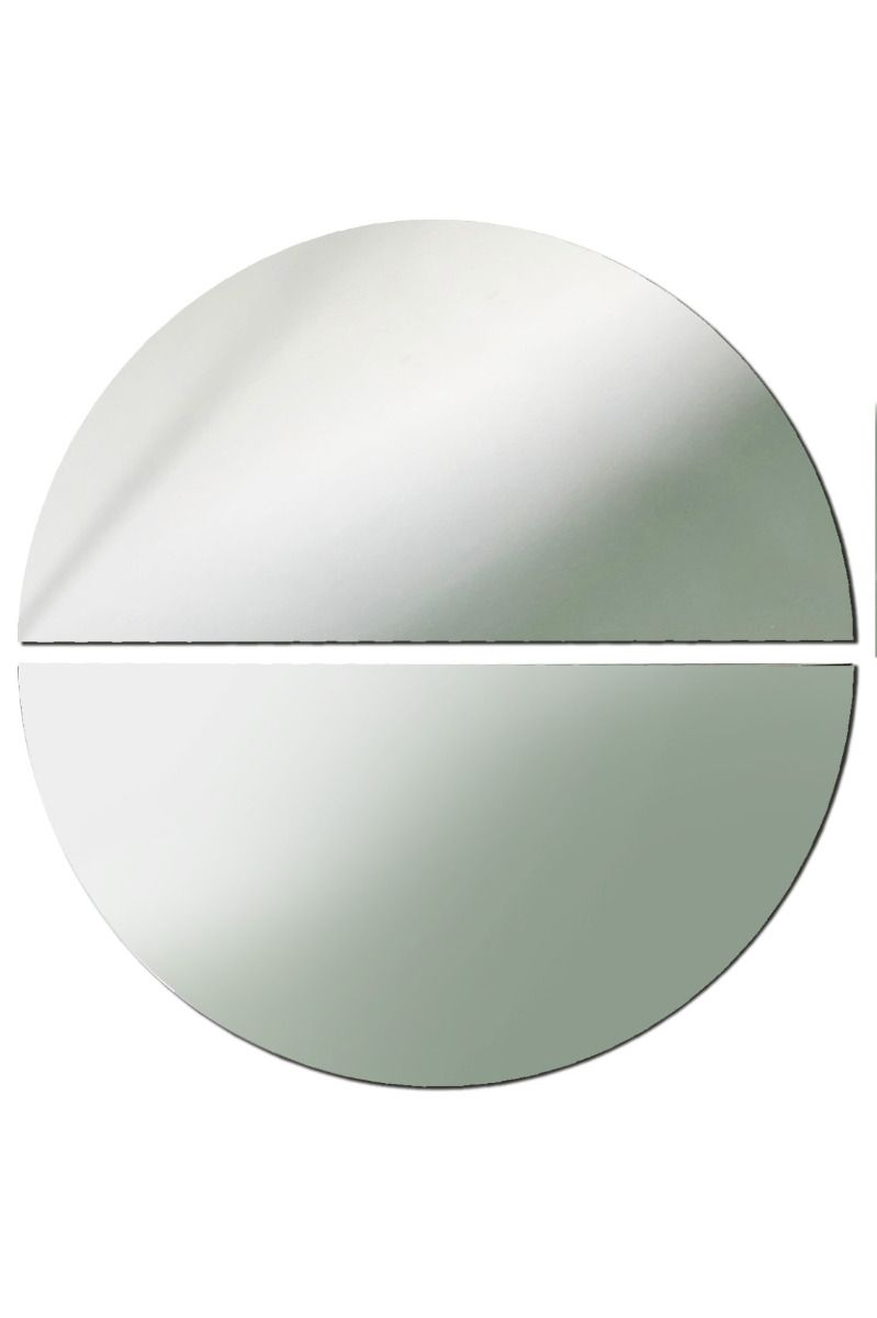 Finish any room stylishly with the new modern circular split wall mirror. All Glass mirror design with polished edges. Hang this mirror for walls either horizontal or vertical in orientation or for extra style try staggering the 2 semi-circles. The versatile design looks great as either a portrait or landscape mirror and can be hung anywhere for your home decor needs. The back is flat to fit flush against walls and look neat when hanging. The mirror includes hooks on the back but requires additional heavy-duty fixings for a secure installation.