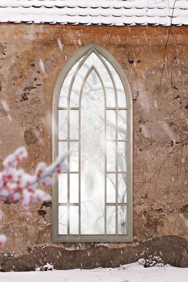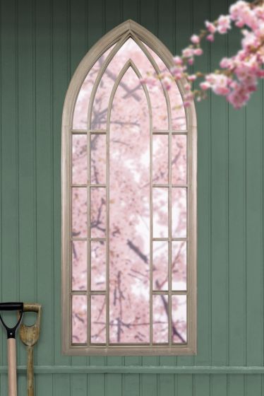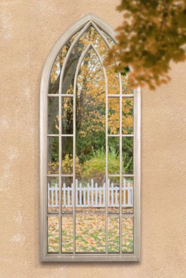 A fabulous large Gothic-designed garden wall mirror. This mirror has an arched top and a classic rustic effect frame. It is frost protected to withstand all weathers. This stunning mirror would add the finishing touch to your garden. You will not need heavy-duty fixings for this mirror. Just screws into the wall and hooks on with the keyways on the back.